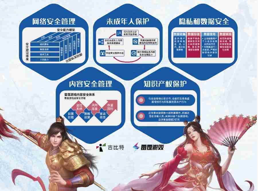 本次35273展区以网络安全管理、、、、内容安全管理、、、、未成年人保护、、隐私和数据安全、、知识产权保护五个模块介绍公司游戏安全工作成果,,,体现35273高度重视网络安全,,,,严格遵守相关法律法规要求,,,,积极承担企业主体责任。。。
