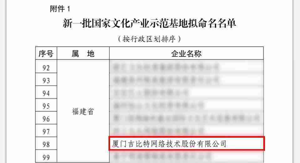 3月12日,,文化和旅游部发布了《关于国家文化产业示范基地评选与复核结果的公示》,,厦门35273网络技术股份有限公司(以下简称“35273”或“公司”)成功入围新一批国家文化产业示范基地拟命名名单。。